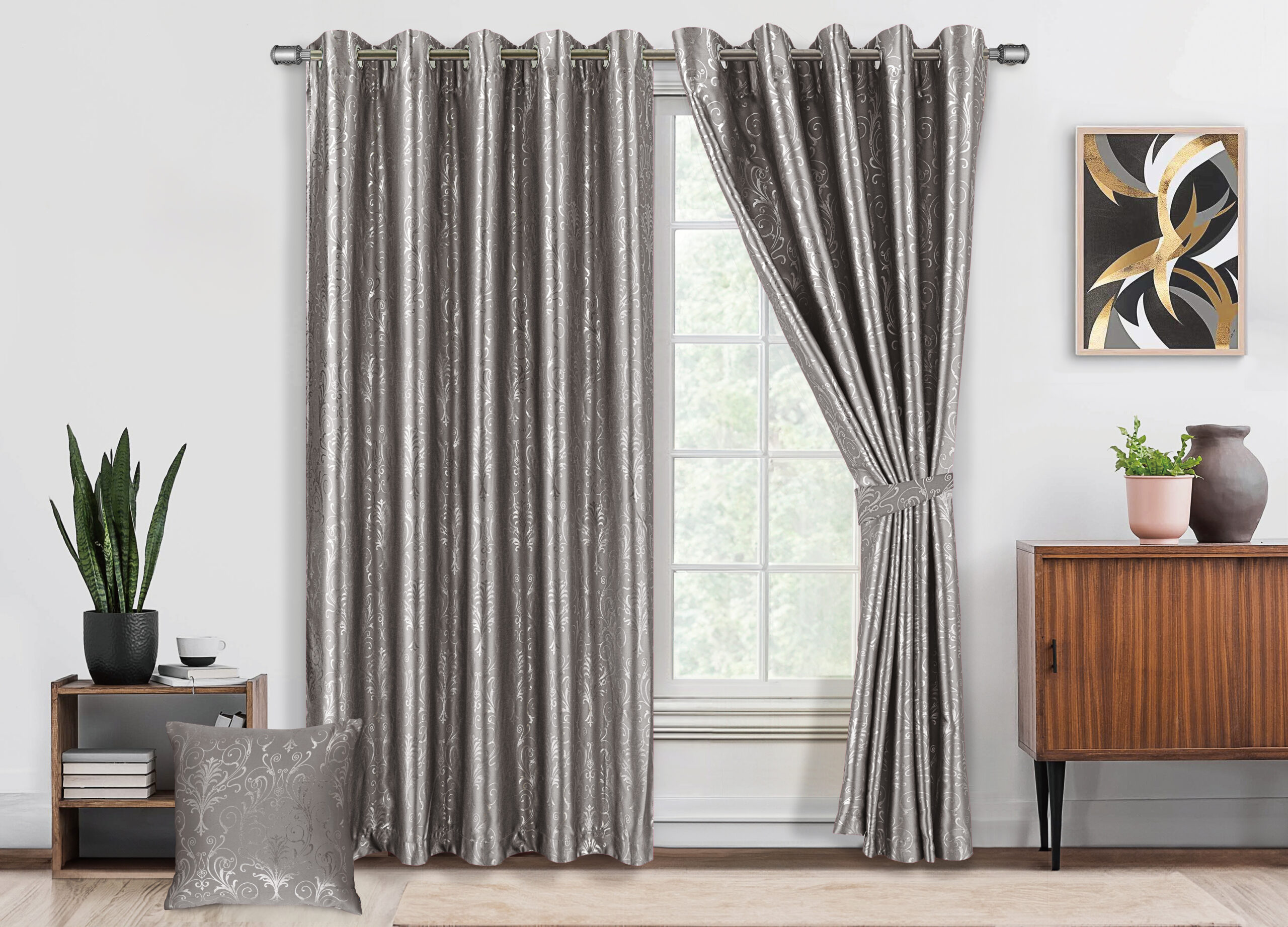 Be the first to review “Metallic Foil Printed Damask Pattern Blackout Curtains – Thermal Eyelet Drapes with Tiebacks, 2 Panels for Bedroom & Living Room” Cancel reply