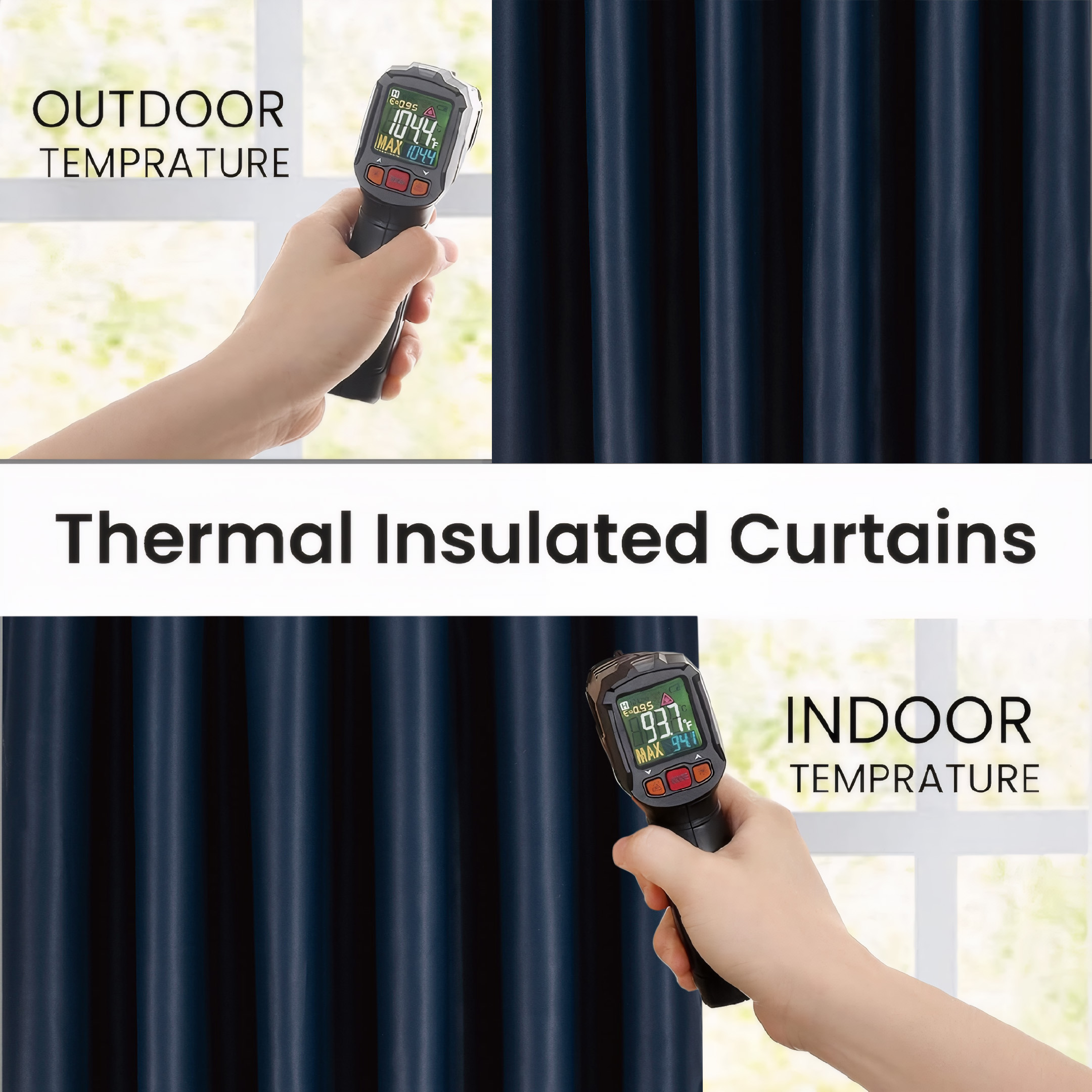 Our thermal blackout curtains help maintain the perfect indoor temperature by reducing heat loss in winter and blocking external heat in summer. These energy-saving curtains lower utility bills by minimizing the need for excessive heating or cooling.